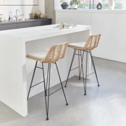 Tabouret De Bar Métal Et Rotin 67cm (lot De 2) Couleur : Naturel