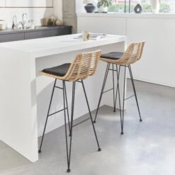 Tabouret De Bar Métal Et Rotin 75cm (lot De 2) Couleur : Noir