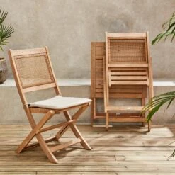 Table De Jardin Bois Et Métal + 4 Chaises En Corde Empilables Couleur : Ivoire / Beige
