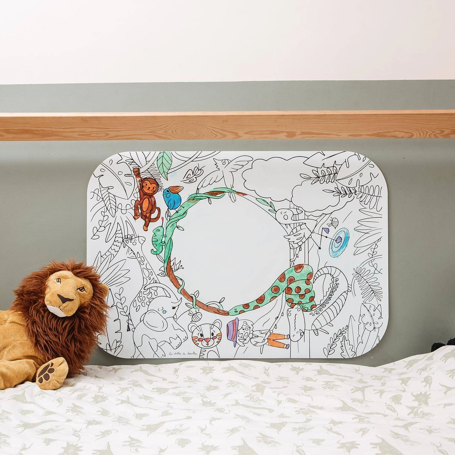 Sur le Coloriboard Jungle, votre artiste en herbe partira à la rencontre des animaux de la jungle : tigre, serpent ou encore éléphant. Le hublot au centre du Coloriboard est un espace vide pour permettre à votre enfant d’exprimer sa créativité. Adapté à la pédagogie Montessori, ce coloriboard convient aux petits comme aux grands. C’est parfait pour passer du temps loin des écrans et c’est écologique. Plus besoin d’imprimer des coloriages ou d’utiliser des feuilles de papier et ça, c’est super pour la planète !