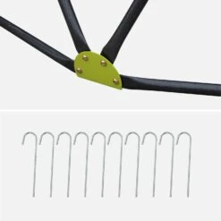 Pour vous garantir une bonne résistance aux conditions extérieures, la structure de l’aire de jeux Albe est recouverte d’une peinture epoxy qui limite l’apparition de corrosion. Par ailleurs, la quincaillerie est en acier galvanisé, les éléments en bois sont en pin et le toboggan est en plastique moulé par injection, très solide.