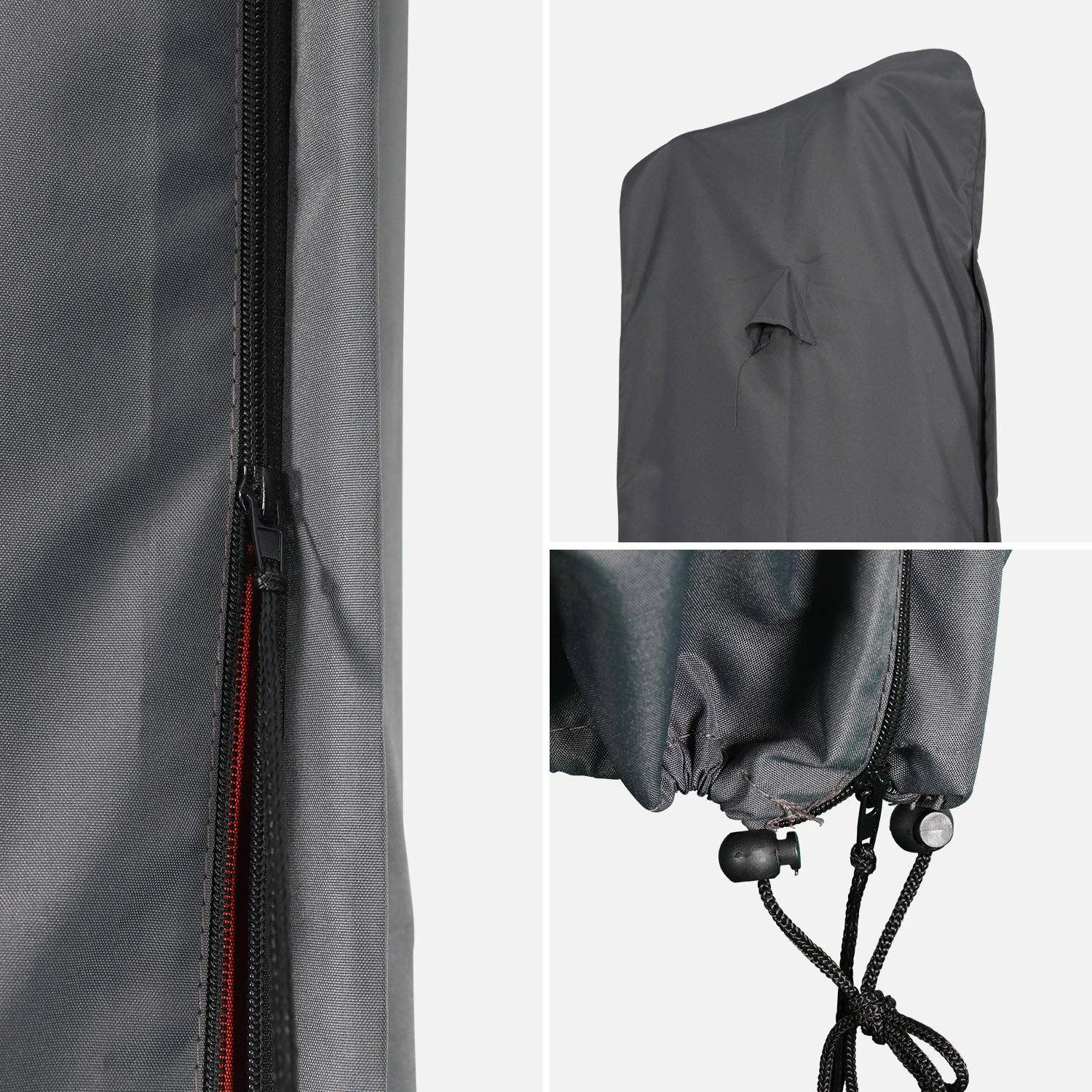 Compatible avec plusieurs de nos parasols, cette housse en polyester et dĂ©perlante, protĂšge efficacement leur toile. Nous vous conseillons de ranger votre parasol dans la housse lorsque vous ne lâutilisez pas. Cela le prĂ©serve des intempĂ©ries et du soleil. En plus, cette housse est pratique. Elle est dotĂ©e dâune fermeture Ă©clair et dâune tige en fibre pour faciliter la mise en place de la housse.