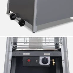 Simple et pratique, le parasol chauffant Sweden sâallume grĂące Ă une pression sur son allumeur Ă impulsions. Ce dernier est alimentĂ© par une pile. Sa porte en façade offre un accĂšs rapide Ă la consigne de gaz. Il est, par ailleurs, Ă©quipĂ© de roulettes pour ĂȘtre dĂ©placĂ© aisĂ©ment.