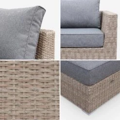 Pour ce salon de jardin haut de gamme, nous avons sélectionné des matériaux de qualité supérieure, pour une longévité optimale et un embellissement de votre extérieur. Le Vittoria est conçu en résine tressée arrondie double. C’est un gage de grande qualité, car c’est un matériau encore plus solide que la résine classique. Elle est plus épaisse et plus large que la résine standard. Cela lui donne, d’ailleurs, un aspect proche du rotin naturel qui est du plus bel effet pour votre extérieur.