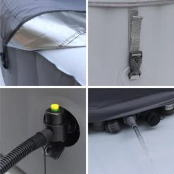 Ce spa est simple d’utilisation. La température, la mise en marche, la chauffe différée et les autres fonctionnalités se gèrent grâce à la télécommande filaire étanche. Le gonflage s’effectue par système intégré. Il suffit de brancher le spa, d’enclencher le mode gonflage et de presser une touche de la télécommande, rien de plus simple ! La mise en place est facile et ne nécessite pas d’outil. En 10 minutes, le spa est installé et prêt à accueillir de l’eau. Un système de vidange avec adaptateur pour tuyau d’arrosage permettra de vider votre spa proprement et sans effort.