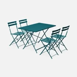 L’ensemble Emilia comprend une table rectangulaire et quatre chaises pliables. Il est parfait pour apporter de la gaieté à un jardin ou un balcon grâce à sa couleur vive. Son style classique rappelle les terrasses des bistrots français.