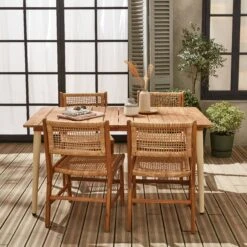A la fois simples et élégantes, elles vous séduiront par leur assise en résine tressée imitation osier et leur structure en bois. Une alliance de matière réussie qui donne une touche rétro et bohème à votre décoration. Le bois d’acacia FSC d’origine Vietnam est résistant et robuste, ces chaises sont donc parfaites pour une utilisation en extérieur.