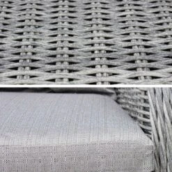 La résine arrondie est un matériau robuste. Elle résiste aux intempéries, aux rayons du soleil et demande peu d’entretien. La structure du Lecco est en aluminium renforcé. Elle ne rouille pas et est plus légère que les structures en acier. Les coussins résistent à l’eau et sont déhoussables. Le plateau en verre de la table est du verre trempé de 5mm d’épaisseur. Il est 5 fois plus résistant que le verre traditionnel.