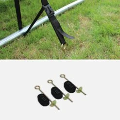 Le kit dâancrage fourni avec le trampoline Galaxie garantit la stabilitĂ© lorsque les enfants sautent et Ă©vite que le trampoline sâenvole en cas de fortes rafales de vent. Il comprend 3 ancrages de 26cm Ă visser dans le sol et des laniĂšres clipsables.