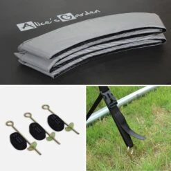 La bĂąche de protection du trampoline est en polyĂ©thylĂšne noir. Elle est un plus non nĂ©gligeable pour les trampolines. Elle protĂšge le tapis de saut des poussiĂšres, des feuilles et de la dĂ©composition des vĂ©gĂ©taux. Ainsi, vous nâaurez pas besoin de le nettoyer Ă chaque coup de vent. Des trous de drainage sont placĂ©s au milieu de la bĂąche pour permettre lâĂ©vacuation de lâeau de pluie