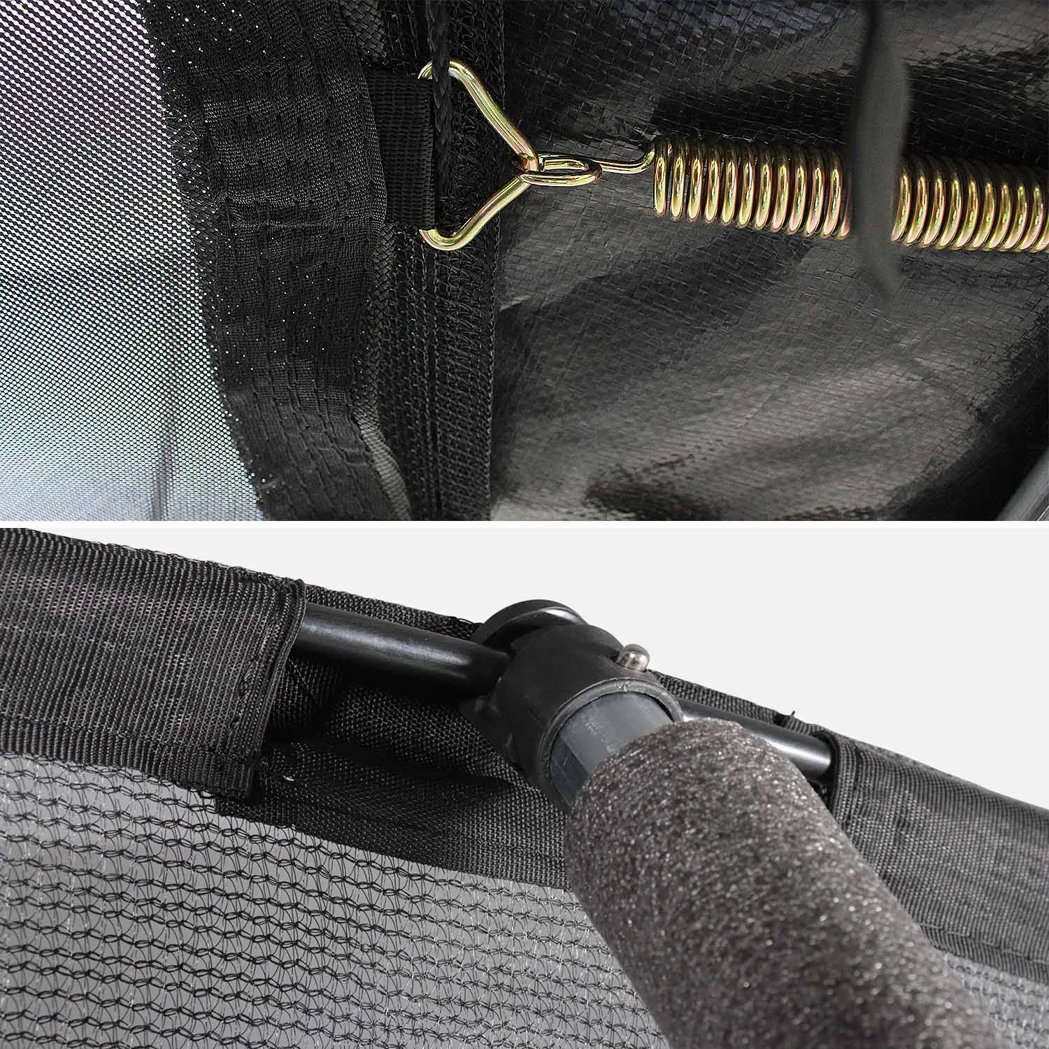 Le filet est situé à l’intérieur de la zone de saut, ce qui assure une sécurité optimale. Une fois à l’intérieur du trampoline, l’accès aux ressorts est impossible lorsque le filet est fermé.